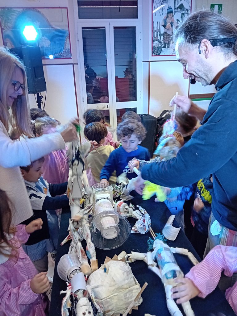 In occasione di questa giornata così importante abbiamo invitato un “burattinaio” che solo con materiali di riciclo ha realizzato le sue marionette e fatto divertire i bambini con il suo spettacolo…